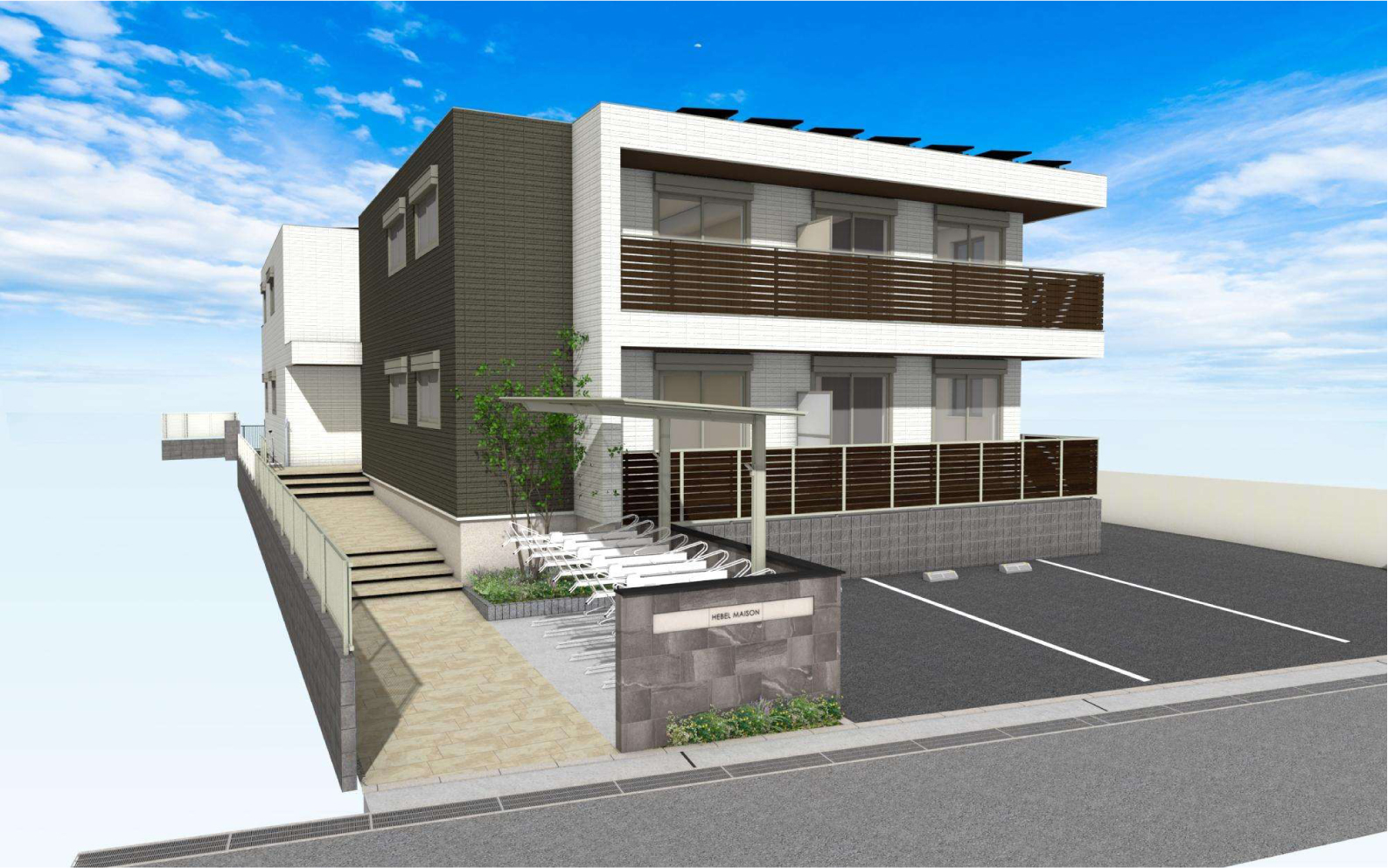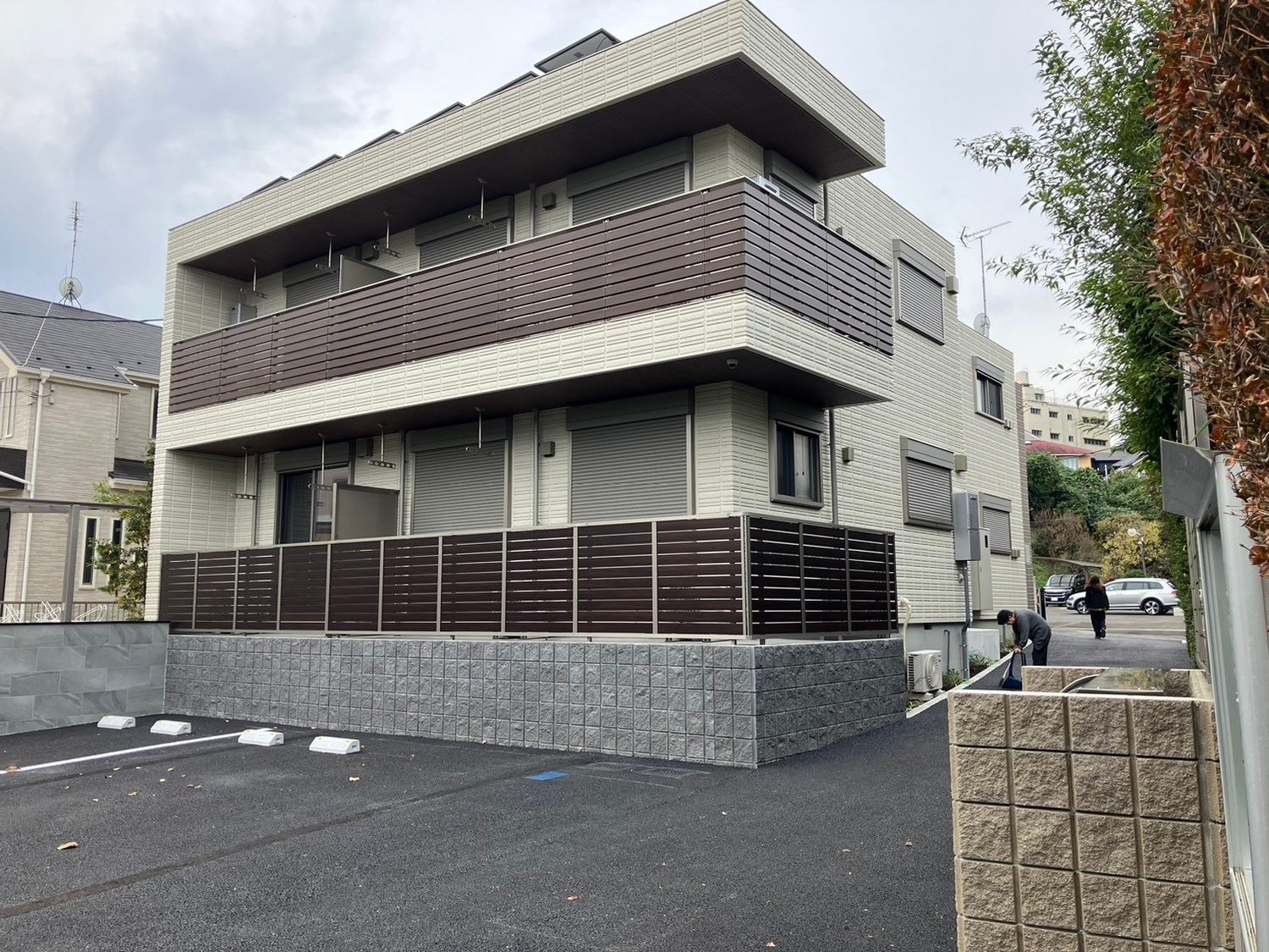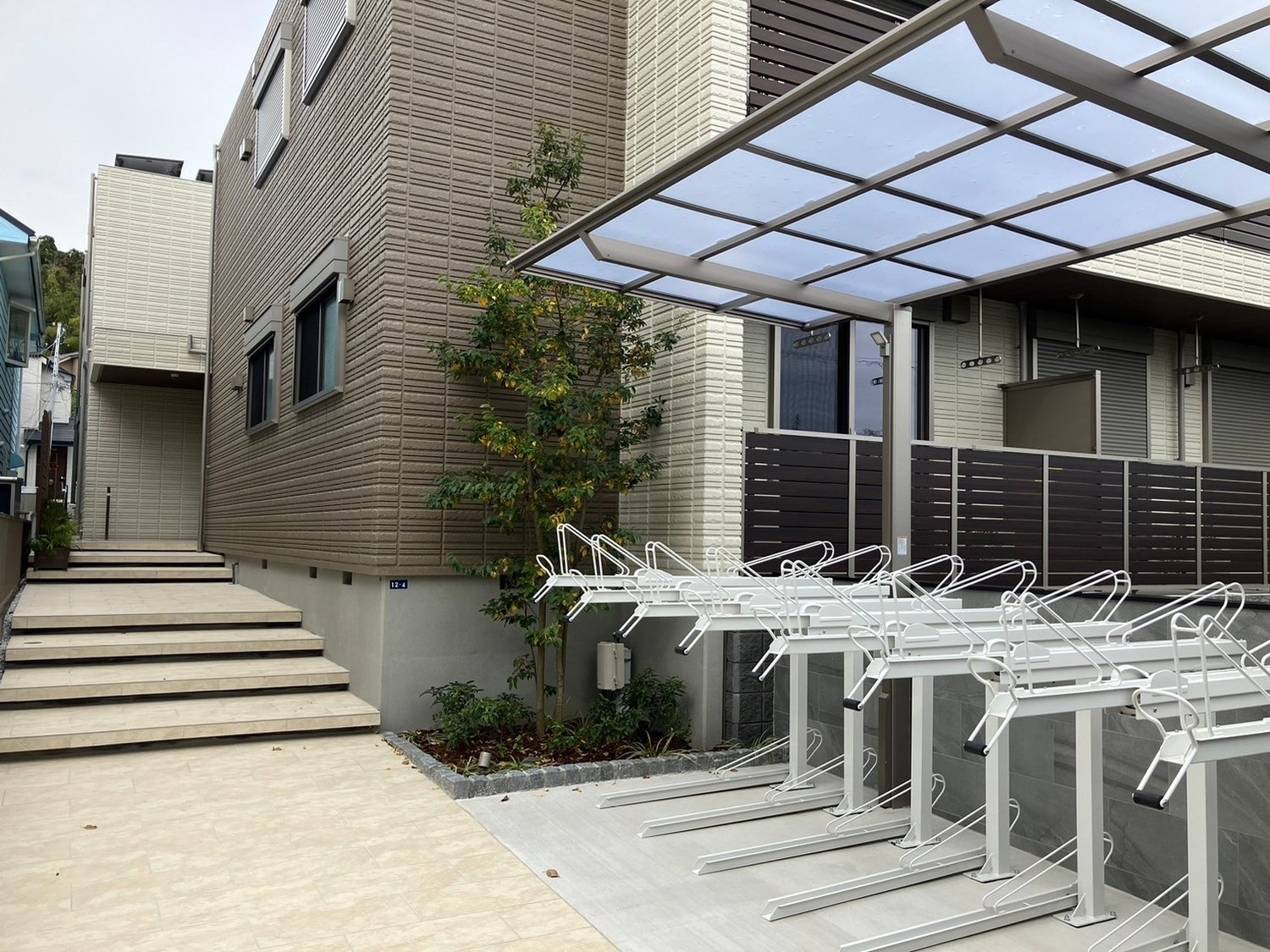 新築外構、門扉、サイクルポート、フェンス、アスファルト舗装